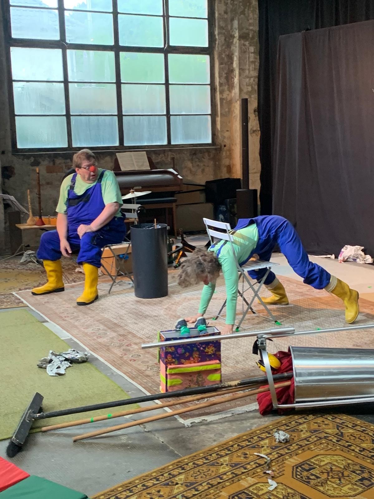 Darsteller war anfangs Mathias Bohnet, der das Downsyndrom hat. In der aktuellen Produktion übernimmt Markus Manthey (Räuber in Schluss mit Kasper) seine Rolle. Als Clownsduo erforschen die beiden andere künstlerische Formen und Mittel und entwickeln aus Improvisationen ein Stück für Kinder. Die Idee dazu stammt von der Dramaturgin und Veranstalterin Sybille Hirzel, die die JUNGE BÜHNE LUDWIGSBURG, das offizielle Kindertheaterprogramm der Stadt Ludwigsburg, leitet. Bernd Köhler, ein sehr erfahrener Regisseur, Schauspieler und Theaterpädagoge konnte für das Projekt gewonnen werden. Live begleitet wird das Duo mit improvisierter Musik von Albrecht Fendrich und einem kuriosen Instrumentarium. Der studierte Maler ist auch für die Bühne und Grafik verantwortlich.