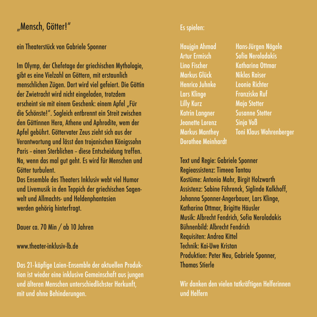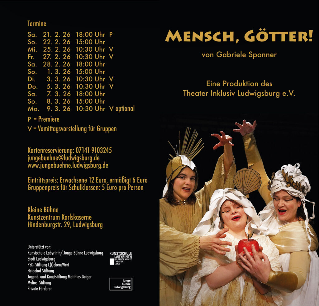 Wir werden gefördert! 7.000 Euro erhält das Theater Inklusiv Ludwigburg e.V. für seine Produktion „Mensch Götter! Ein vergnügliches Theaterstück aus der griechischen Götterwelt“.